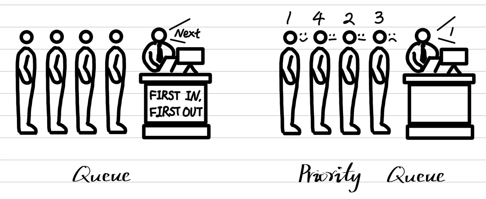 - Priority queue: a data structure where elements have priorities.
