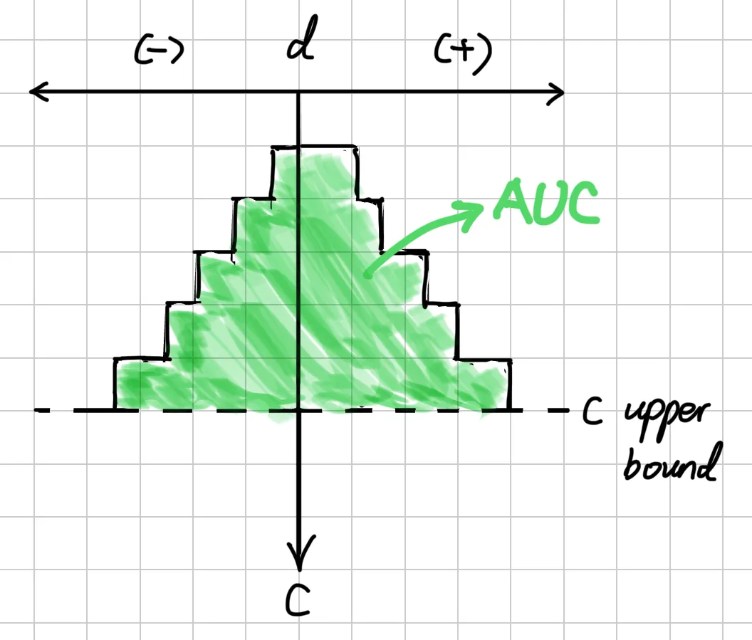 To summarize the conceptual distance between two images, the paper suggests calculating the Area Under Curve (AUC) of the distance function across all complexity levels $C$.