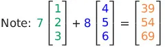 → 이 상황을 수학의 언어로 번역하면, 행렬의 열은 $n=3$개이나, 열공간을 생성하는 데 $r=2$개의 독립열 (기저)인 (1, 2, 3), (4, 5, 6)만 필요하고, 나머지 $n-r=1$개의 종속열인 (39, 54, 69)는 독립열로 만들 수 있다: 7(1, 2, 3)+8(4, 5, 6). 즉, $\text{Column Rank} = \text{Dimension} = 2$이다.