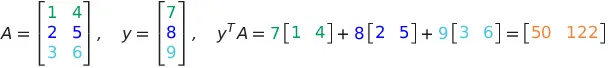 → $A$의 행 (재료)와 임의의 벡터 (조합법) $y$를 이용하여 각종 조합을 만들어내는 것을 $y^TA$로 표현.
