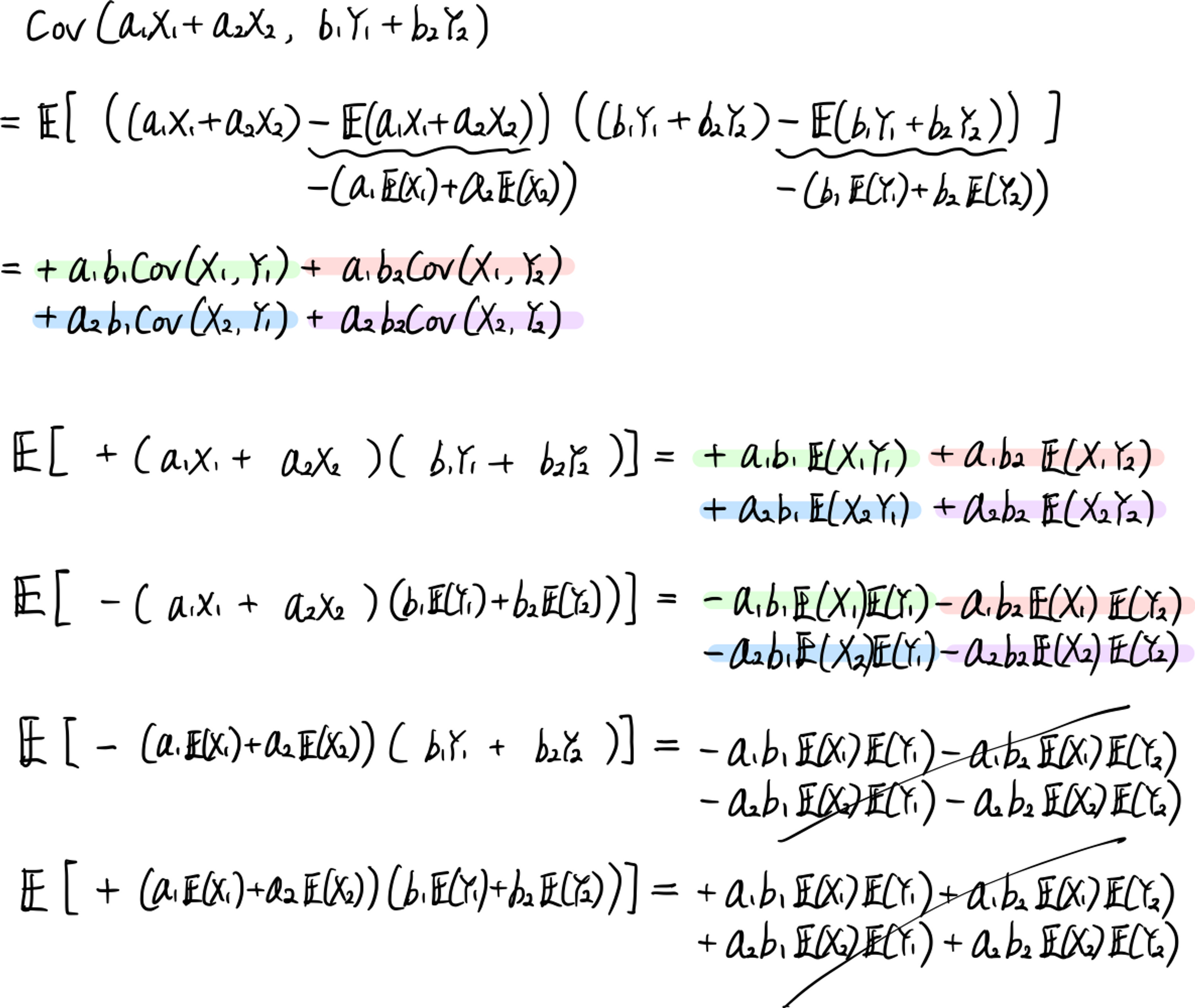 공분산이 포함된 식을 정리할 때 쓰는 성질들을 요약해둔다.