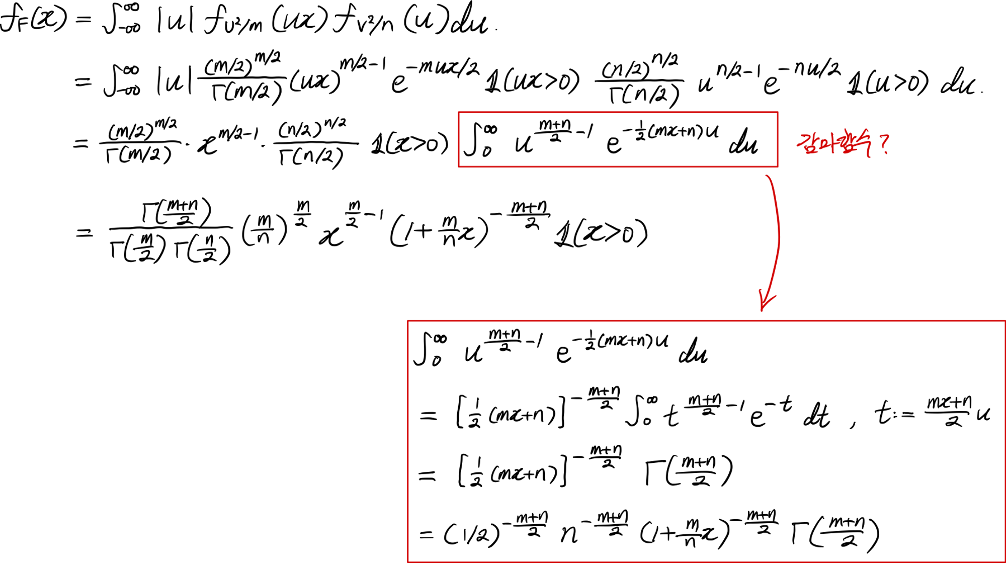 결과물: F분포의 확률밀도함수는 다음과 같다.