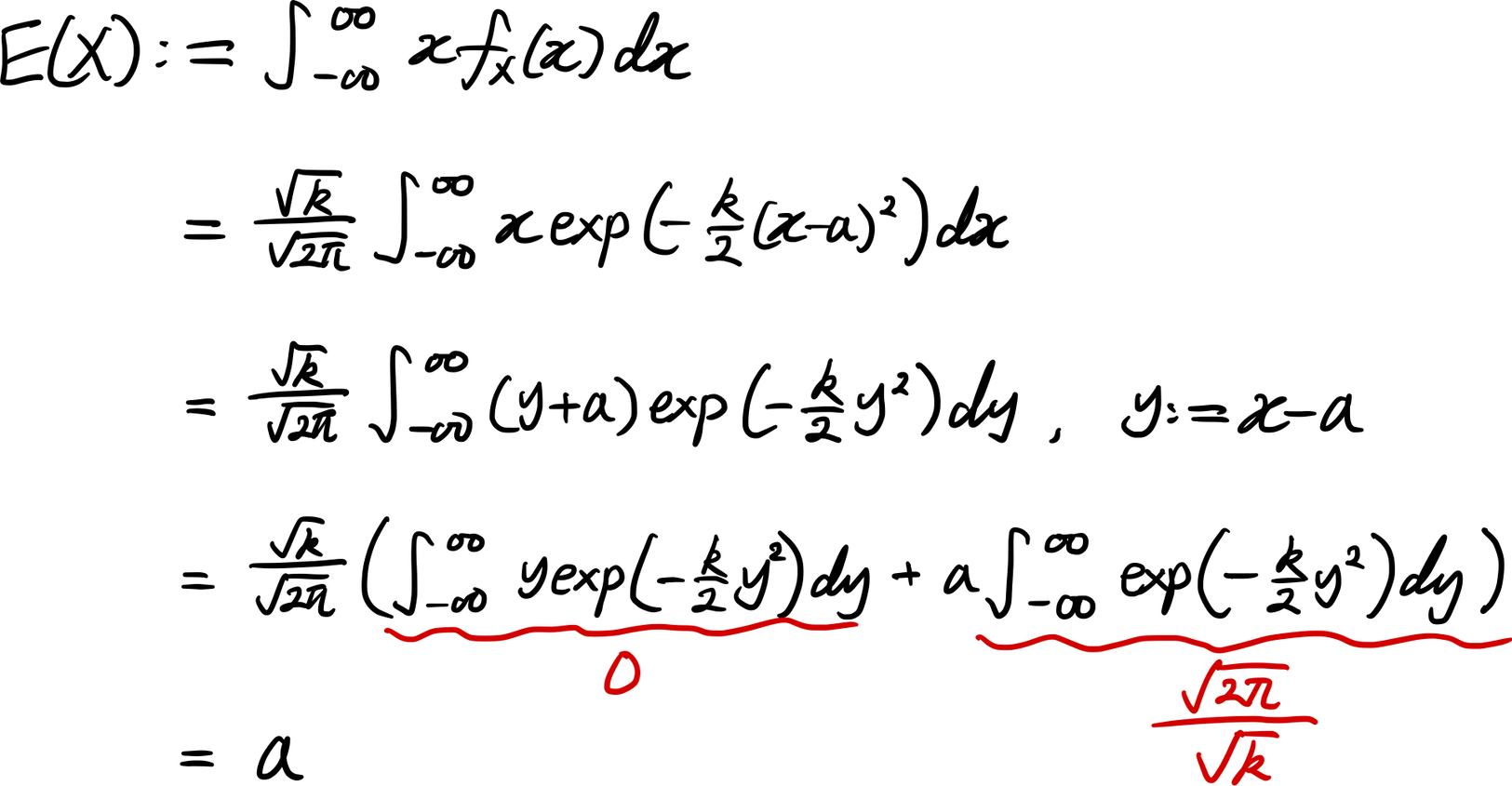 =&\int_{-\infty}^\infty \exp\left(-\frac{k}{2}y^2\right)\space\mathrm{d}y,\space y:=x-a