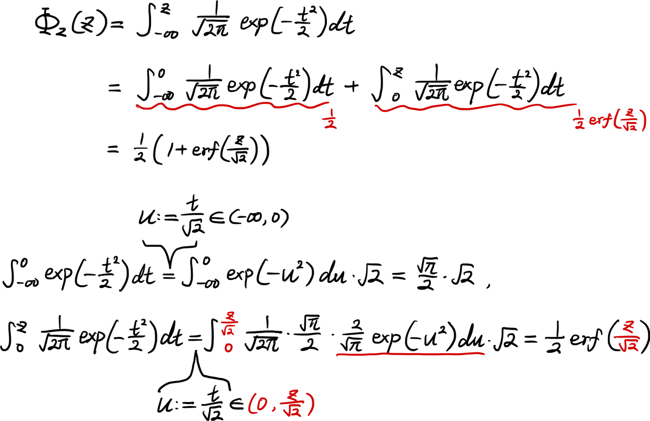여기서 많이 쓰이는 $\Phi_Z(z)$를 간단히하기 위해, 오차함수(Error Function; 误差函数) $\mathrm{erf}(z)$를 다음과 같이 정의한다.