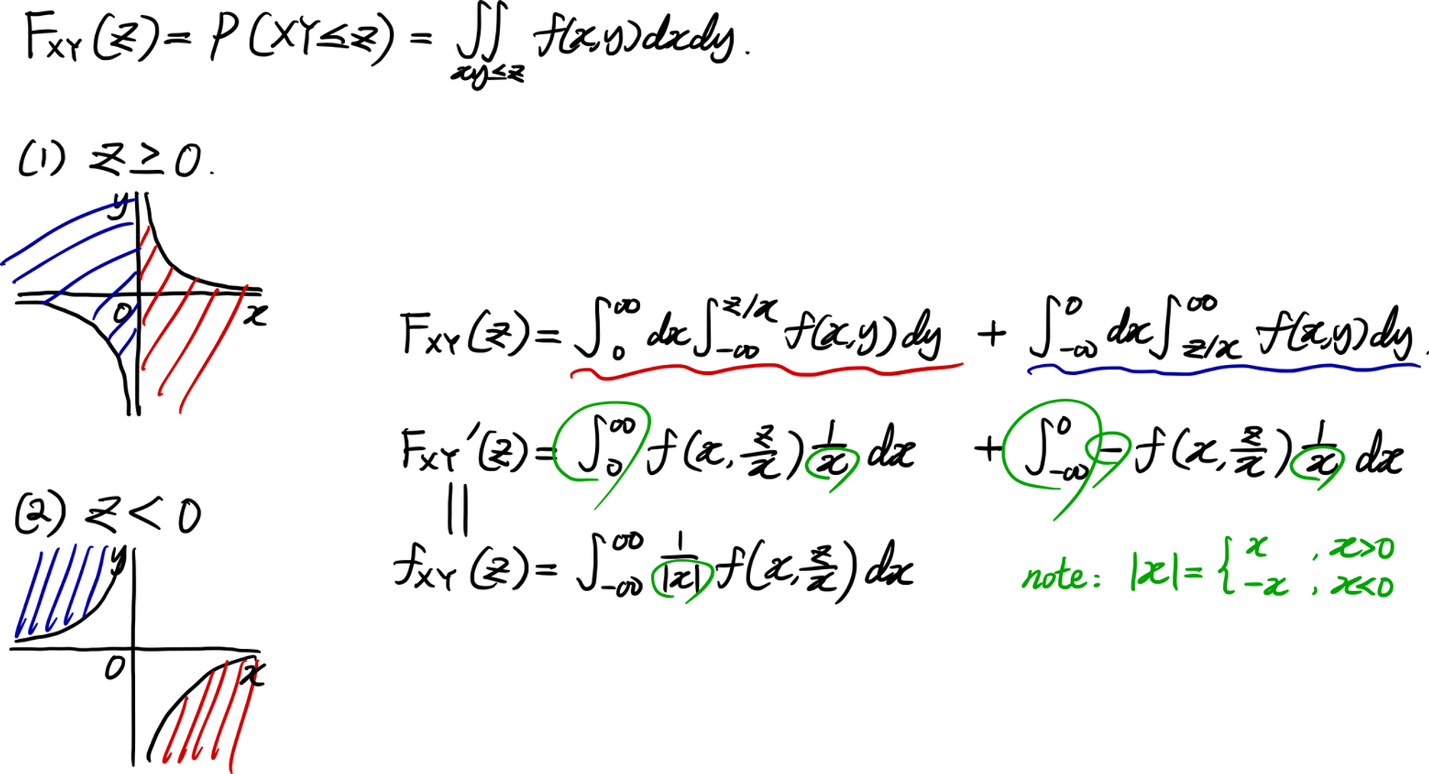 두 연속확률변수의 곱의 분포는 다음과 같이 구한다.