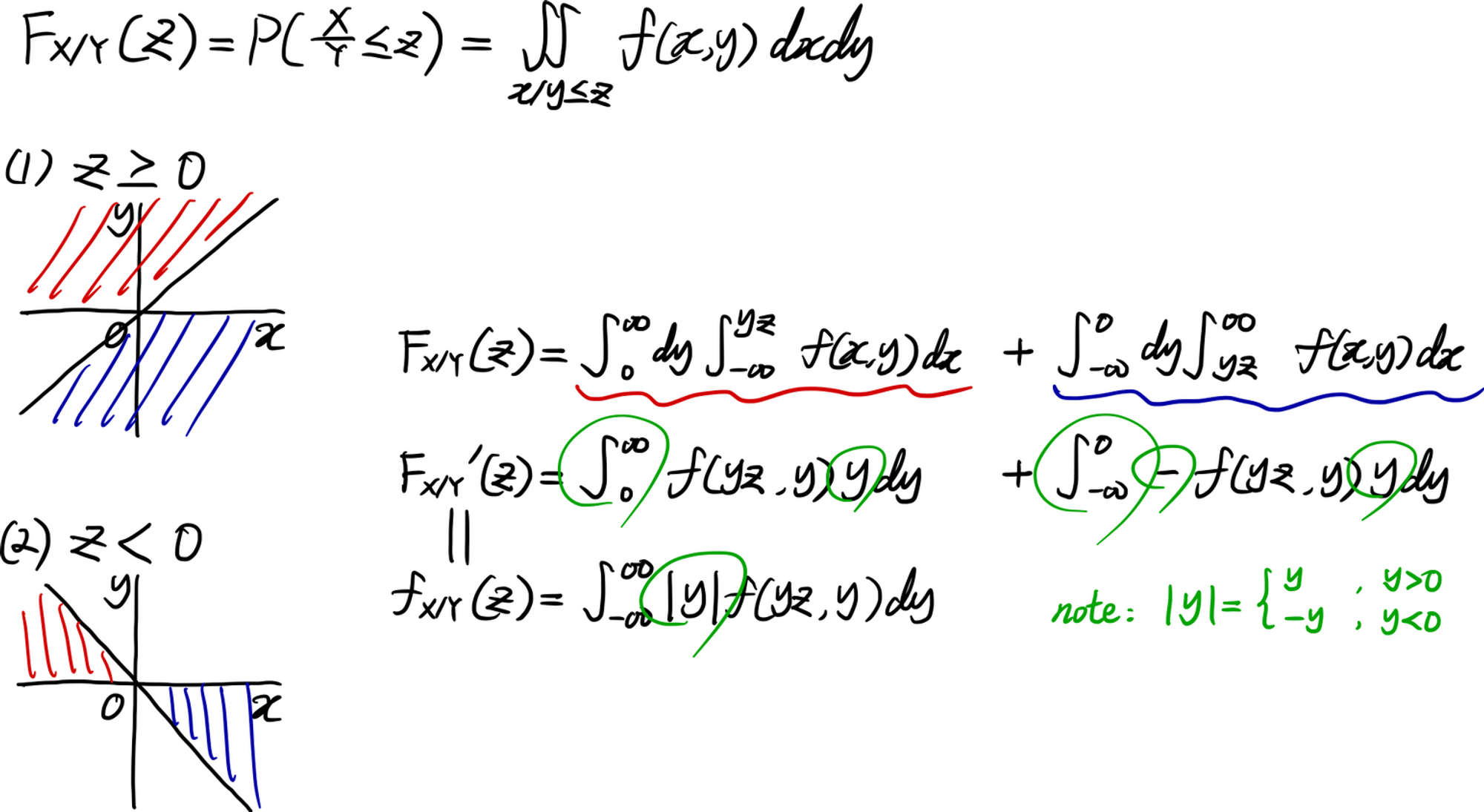 두 연속확률변수의 몫의 분포는 다음과 같이 구한다.