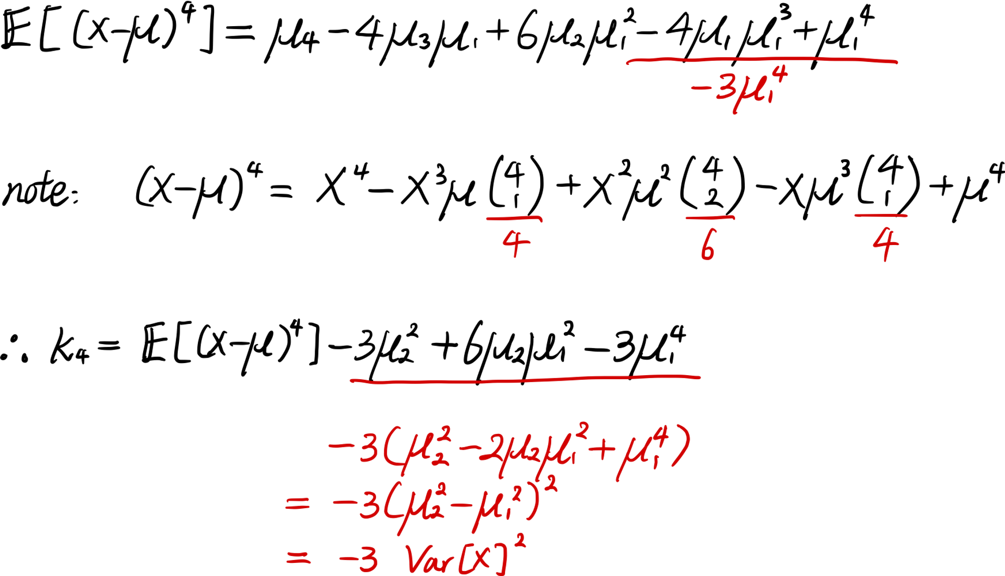 &\kappa_4=\mathbb{E}[(X-\mu)^4]-3\mathrm{Var}[X]^2