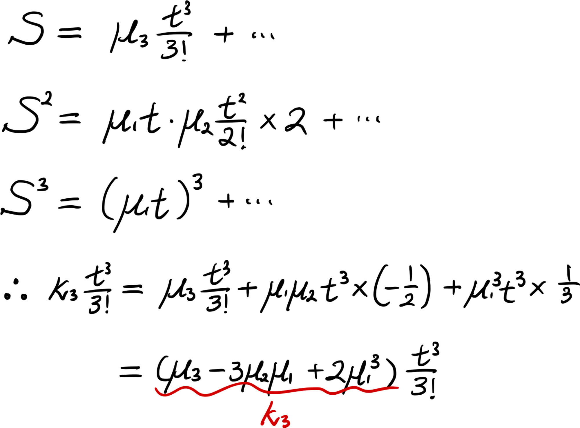 &\kappa_3=\mu_3-3\mu_2\mu_1+2\mu_1^3